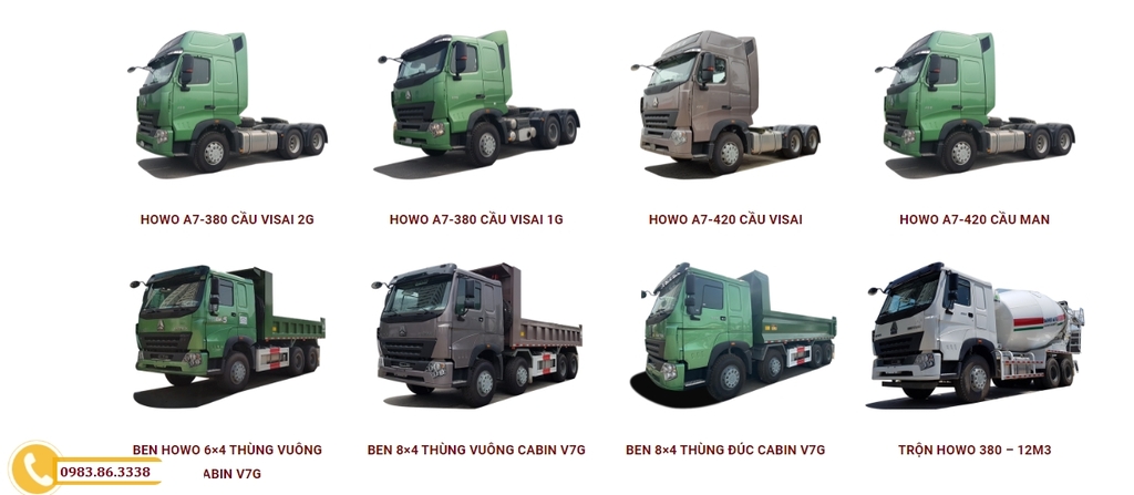 BẢNG GIÁ XE TẢI HOWO, XE BEN HOWO, XE ĐẦU KÉO HOWO, XE TRỘN BÊ TÔNG HOWO MỚI NHẤT 2022