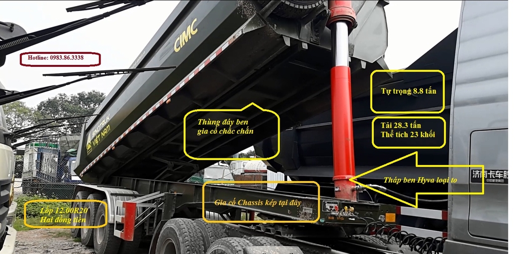 Về đầu kéo sử dụng cho mooc ben: Quý khách có thể chọn loại A7, động cơ 375HP, 380HP hoặc 420HP loại cầu dầu (Visai) với 12 - 16 số được đánh giá phù hợp với sơ mi rơ mooc ben tự đổ này.