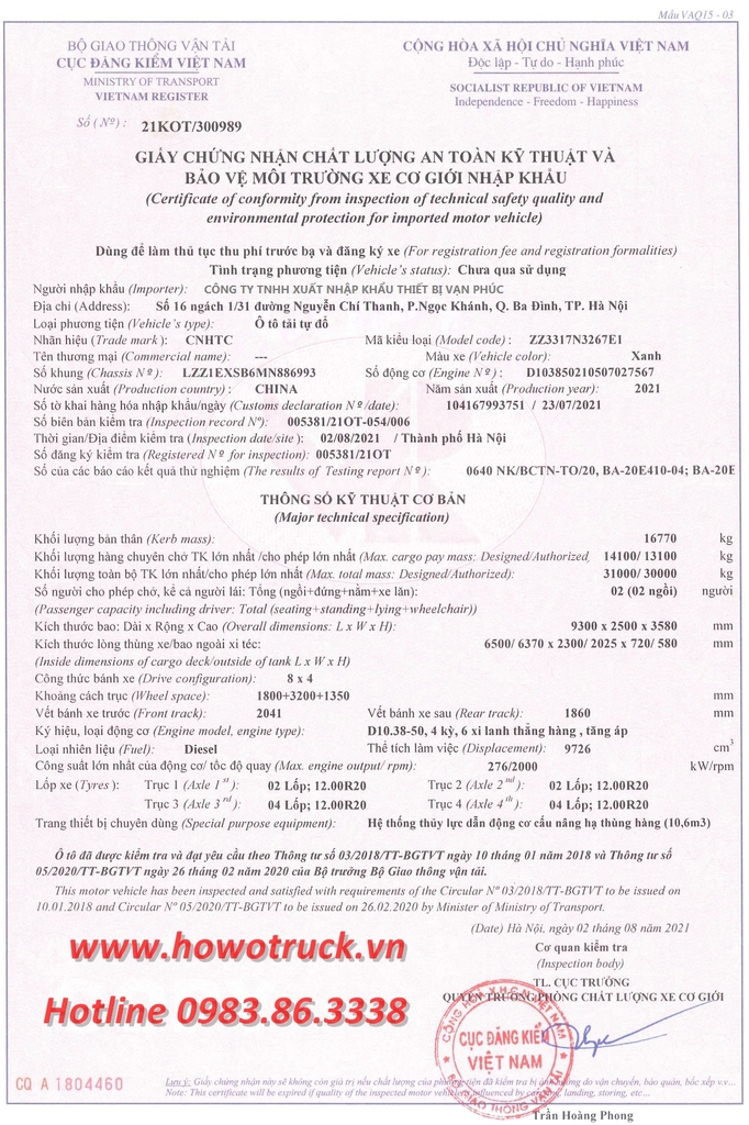 ĐĂNG KIỂM XE BEN HOWO 4 CHÂN BẢN FULL