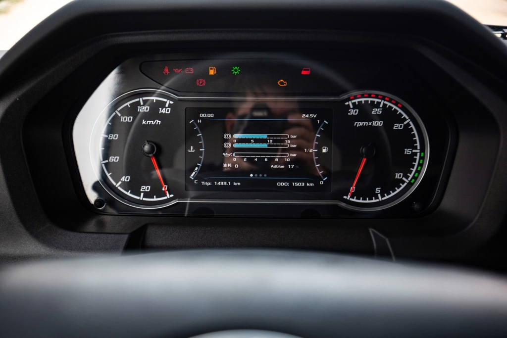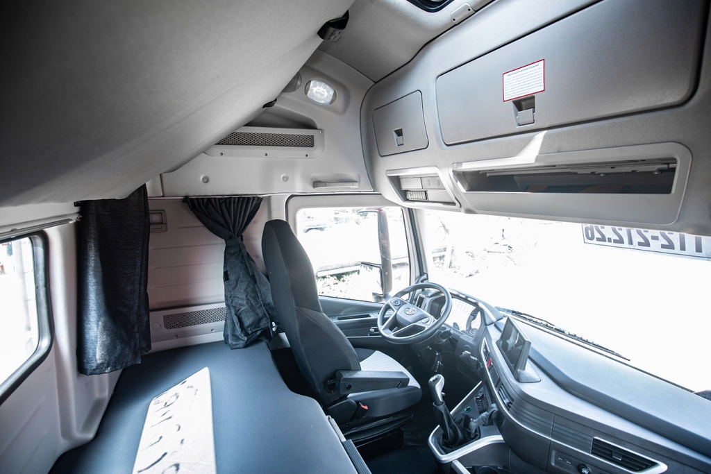 - Cabin được trang bị camera 360, dây đai an toàn, gương chiếu hậu chỉnh điện, có sấy nóng, ghế ngồi lái xe và phụ xe có thể điều chỉnh được, ghế lái ghế hơi, hệ thống thông gió và tỏa nhiệt, 2 bộ giảm xóc bóng hơi và bộ giữ cân bằng nằm ngang..