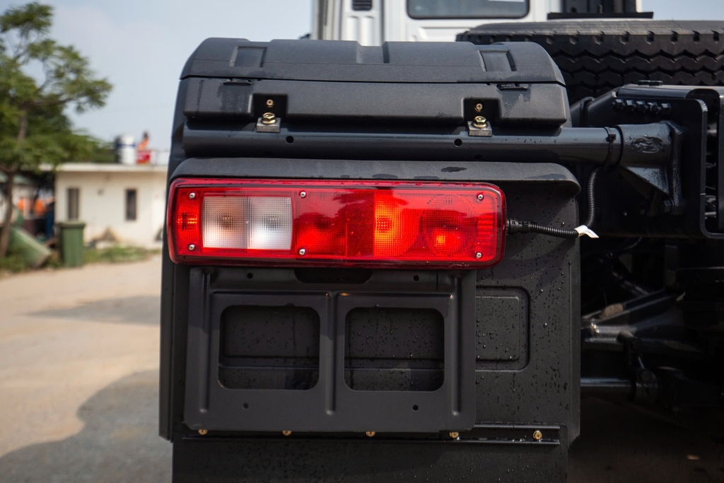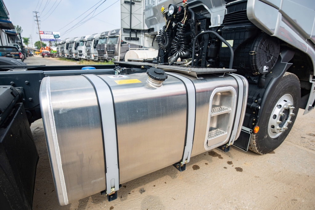 Tự trọng 10650kg cùng kích thước bao 6920 x 2500 x 4000mm. Xe trang bị hệ thống điện 24V với máy khởi động 24V - 5.4 Kw. Thùng nhiên liệu hợp kim nhôm 700 lít, mâm kéo #90..