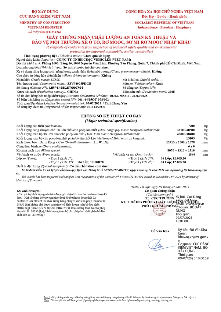 Đăng kiểm mooc sàn 45 feet CIMC - Hotline 0983.86.3338