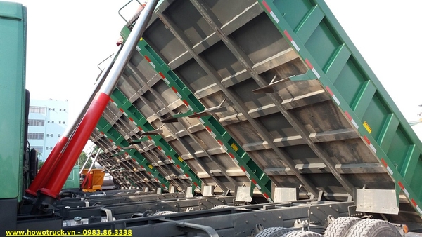 Howo truck trân trọng giới thiệu sản phẩm xe ben 3 chân Howo, tải trọng cao. Động cơ truyền thống WD615 công suất 371HP mạnh mẽ. Tải trọng hàng hóa được 12,370 Kg phù hợp cho các khách hàng chuyên chở trong các khu vực nhiều trạm cân. Thiết kế hình thức đẹp, với hệ thống treo 5 lá nhíp loại bản lớn. Đó là sự lựa chọn tối ưu cho các khách hàng sử dụng xe ben Howo - đặc biệt khu vực đồng bằng, hoặc lân cận các thành phố.
